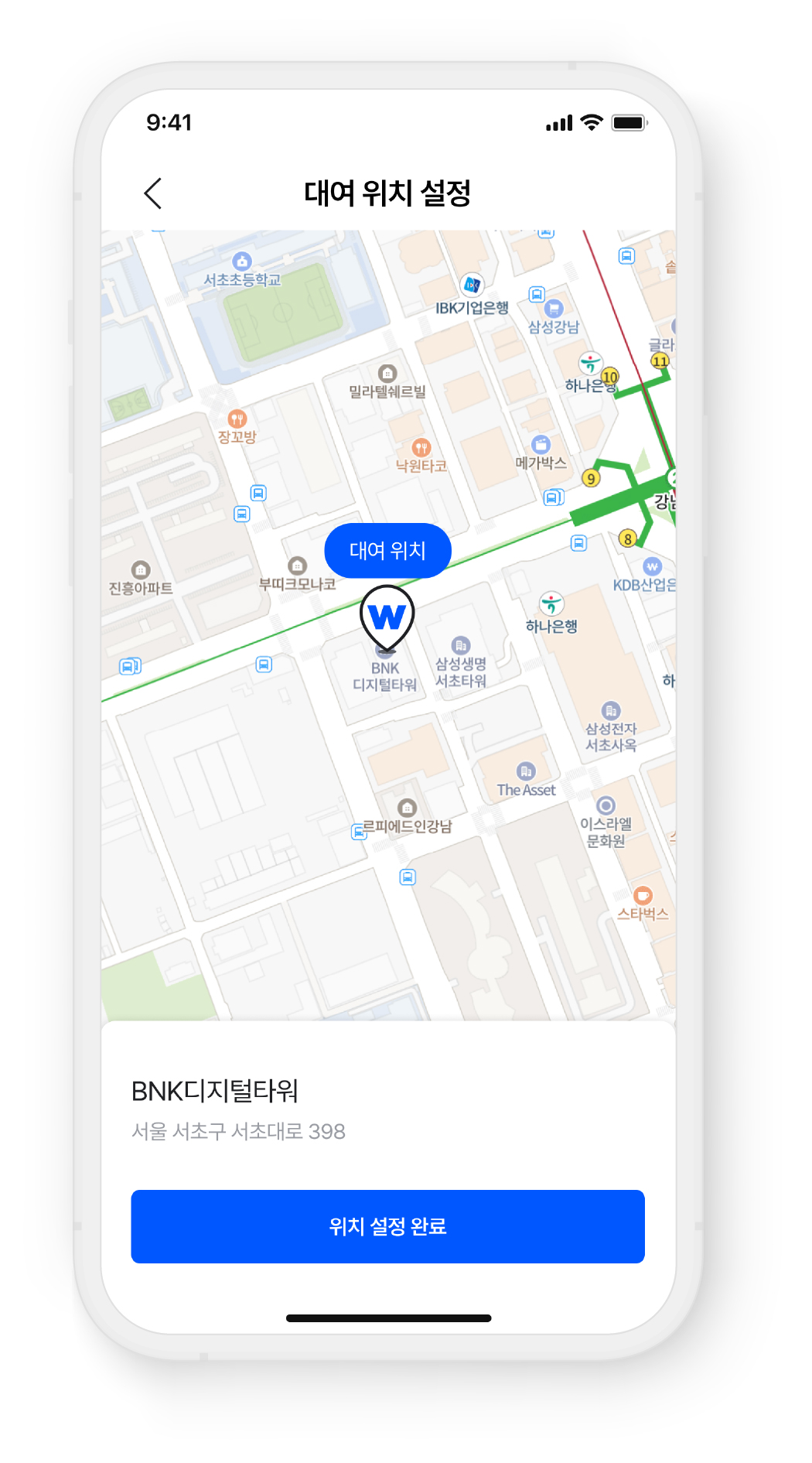 *대여위치 설정 단계에서 지정한 위치는 차량 배달 시 기준이 되며, 배달과 반납 위치는 동일하게 적용됩니다.